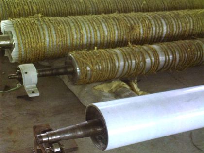 新型增强特氟珑引纸辊:用于纸页从网部到压榨部的过渡及从压榨部到烘干部的过渡。具有良好的不粘性.耐磨性及耐高温性能。普通特氟珑辊表面特氟珑厚度为0.15mm左右,使用寿命短,我公司增强特氟珑辊喷涂厚度可达2mm,不仅延长使用寿命,长时间使用后,还可修磨辊面再使用。